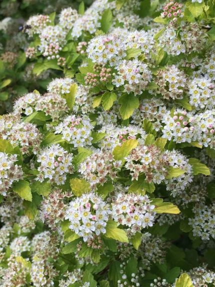 Rudenī vai agri pavasarī izgriež smalkos zariņus un saīsina spēcīgos zarus krūmu atstājot 20-25cm no zemes. Agri pavasarī var apgriezt, pat ja izveidojušies jaunie pumpuri. Lielāki ziedi būs tieši uz jaunajiem dzinumiem no zemes. Ļoti dekoratīvas ziedu laikā! Ziedu skaras līdz 15 cm pusapaļos vairogos. Var izmantot dzīvžogos. Augums līdz 1.5m.