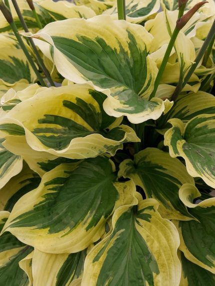 Vidēji agri ziedoša šķirne ar puspildītiem līdz pildītiem ziedi. Ziedi dzelteni ar sarkaniem lāsumiem centrā. Saknes izmērs 03/05
