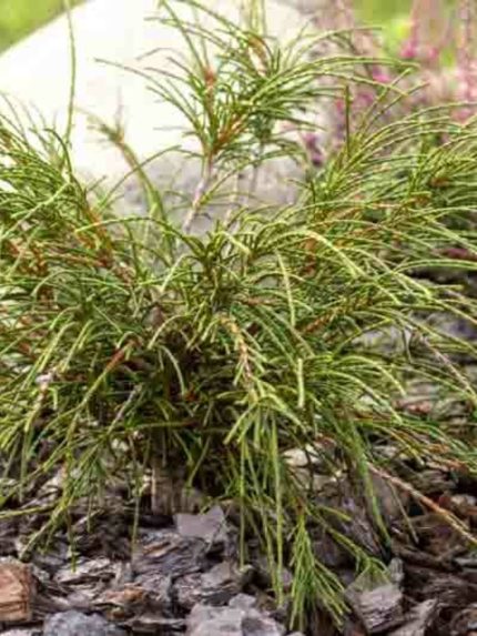 Punduris skujkoks, kas lēnām sasniedz 60 cm lielu bumbu. Tam ir spalvaini dzeltenzaļas lapas, kas ziemā kļūst bronzas nokrāsas.